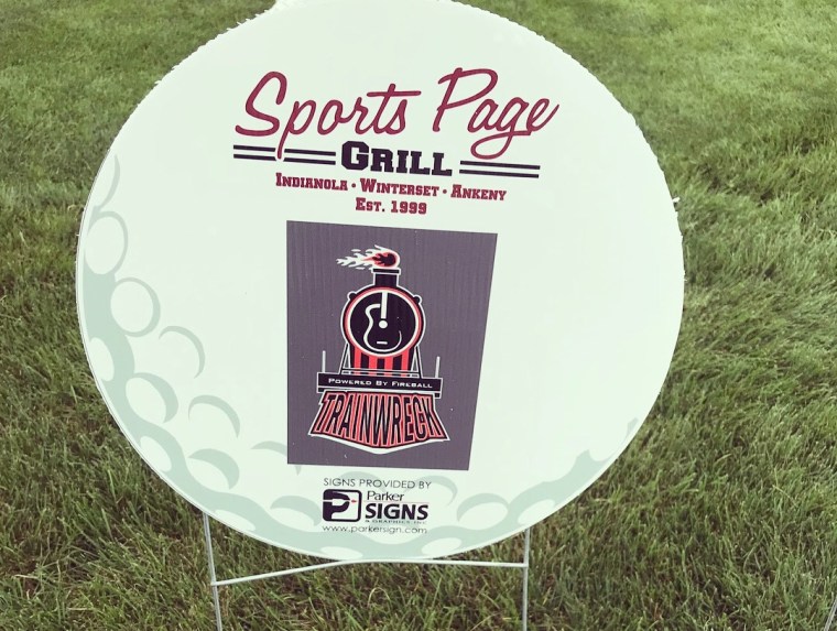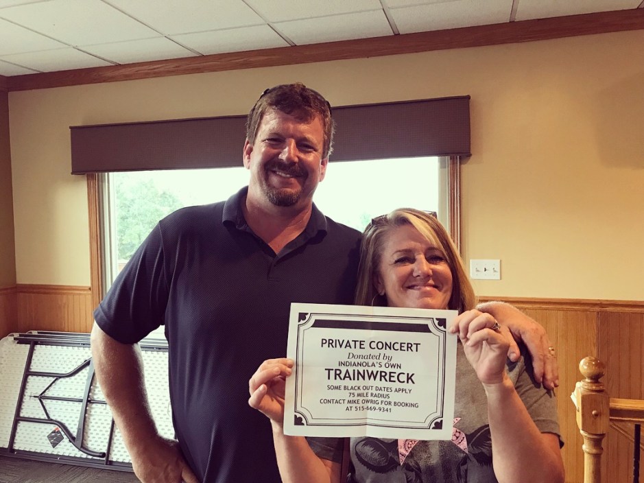 Congratulations to Steph & Daran!! This awesome couple happened to be the highest bidder for a TrainWreck concert at yesterday’s Annual The Sports Page Athletic Booster Club Golf Tournament. Their next event may get a little loud…. We are very excited to play for them! Thanks to everyone who came out to support our Indianola Athletic Booster Club!